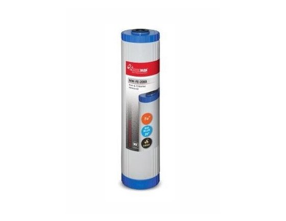 Картридж NW-FE-20BB Новая Вода (антижелезо, "Centaur", высокое качество) - сменный фильтрующий элемент, предназначенный для высокоэффективной очистки воды от растверенного железа (Fe2+) и хлораминов. Предназначен для использования в бытовых и промышленных системах очистки воды. Изготовлен из особого, каталитического угля «CENTAUR», производства США. Данный сорбционный материал обладает усиленными свойствами по отношению к другим видам сорбентов и по мимо основного назначения значительно улучшает органолептические показатели воды.